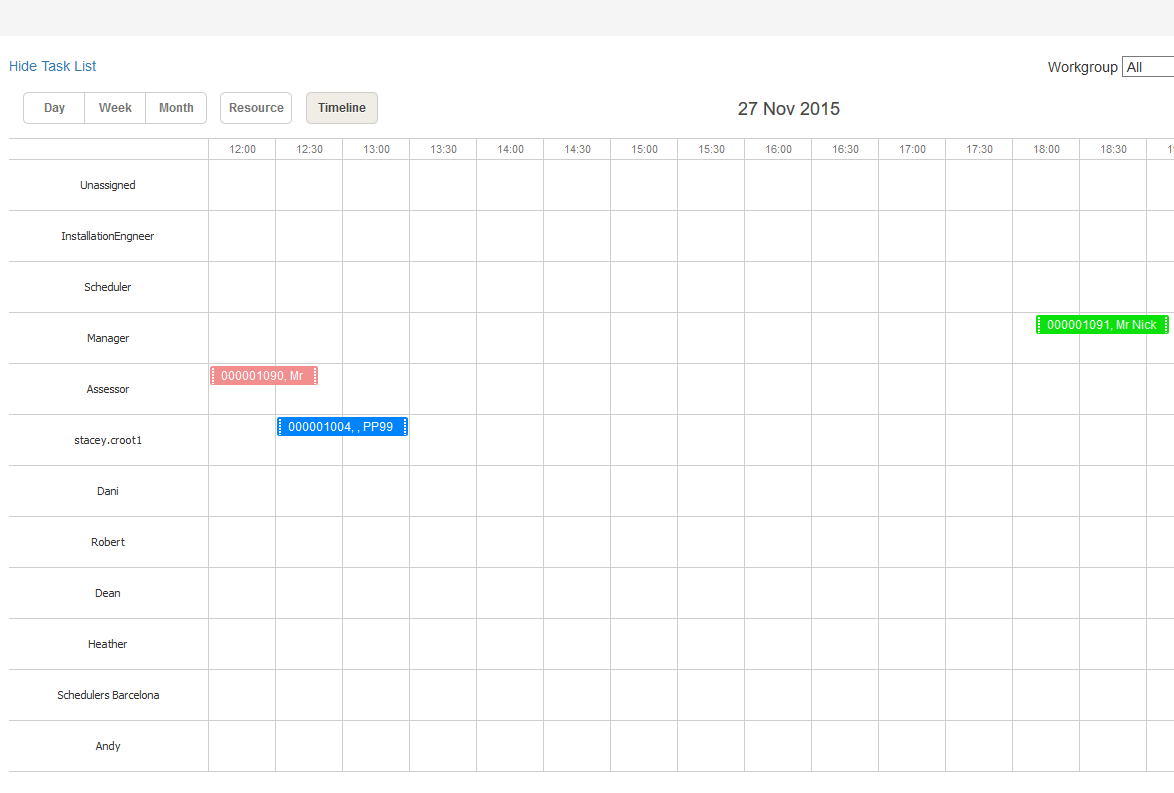 Tasks can be scheduled to a resource from several places in the application. The scheduling home page will present two tiles, 'planner' which is a calendar view of the resources over time and date and 'tasks' which is a list of all the tasks at hand either scheduled or awaiting scheduling.