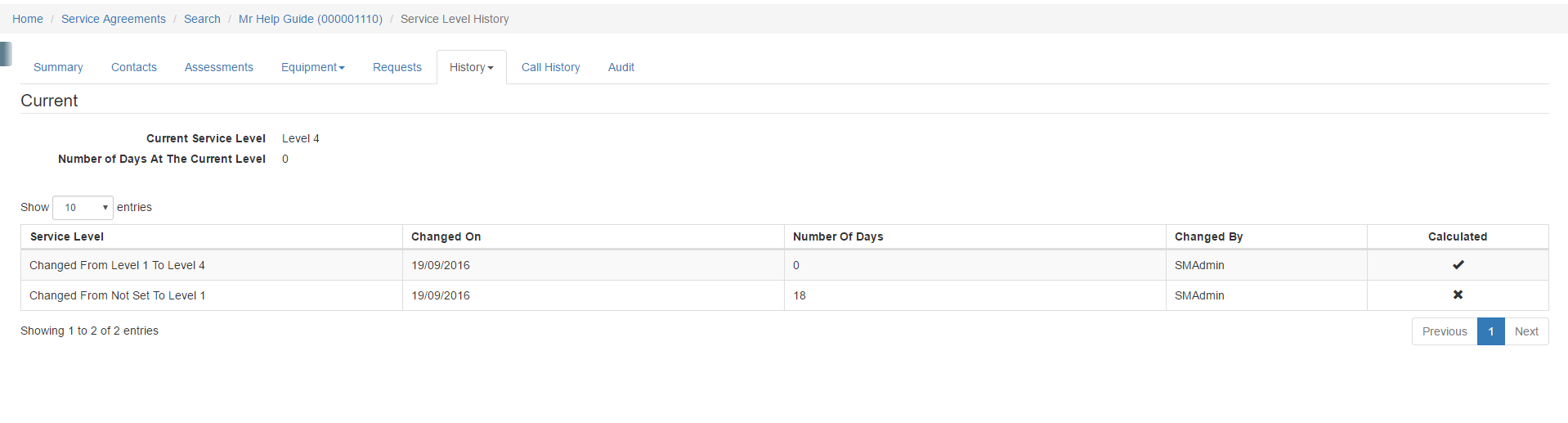 When the Service Level is changed, an entry will be added to the Service History level table, showing how, when and by whom it was changed.
